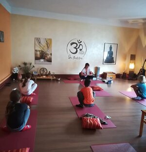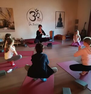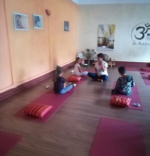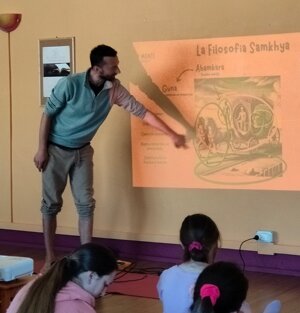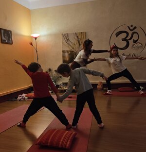 Un incontro di yoga che è stato il proseguimento di una lezione teorica che i bambini hanno fatto in classe con la loro insegnante Mariagrazia, attraversando la storia dell'antica India e parlando delle tre divinità creatrici Brahma, Visnu e Shiva (Trimurti).